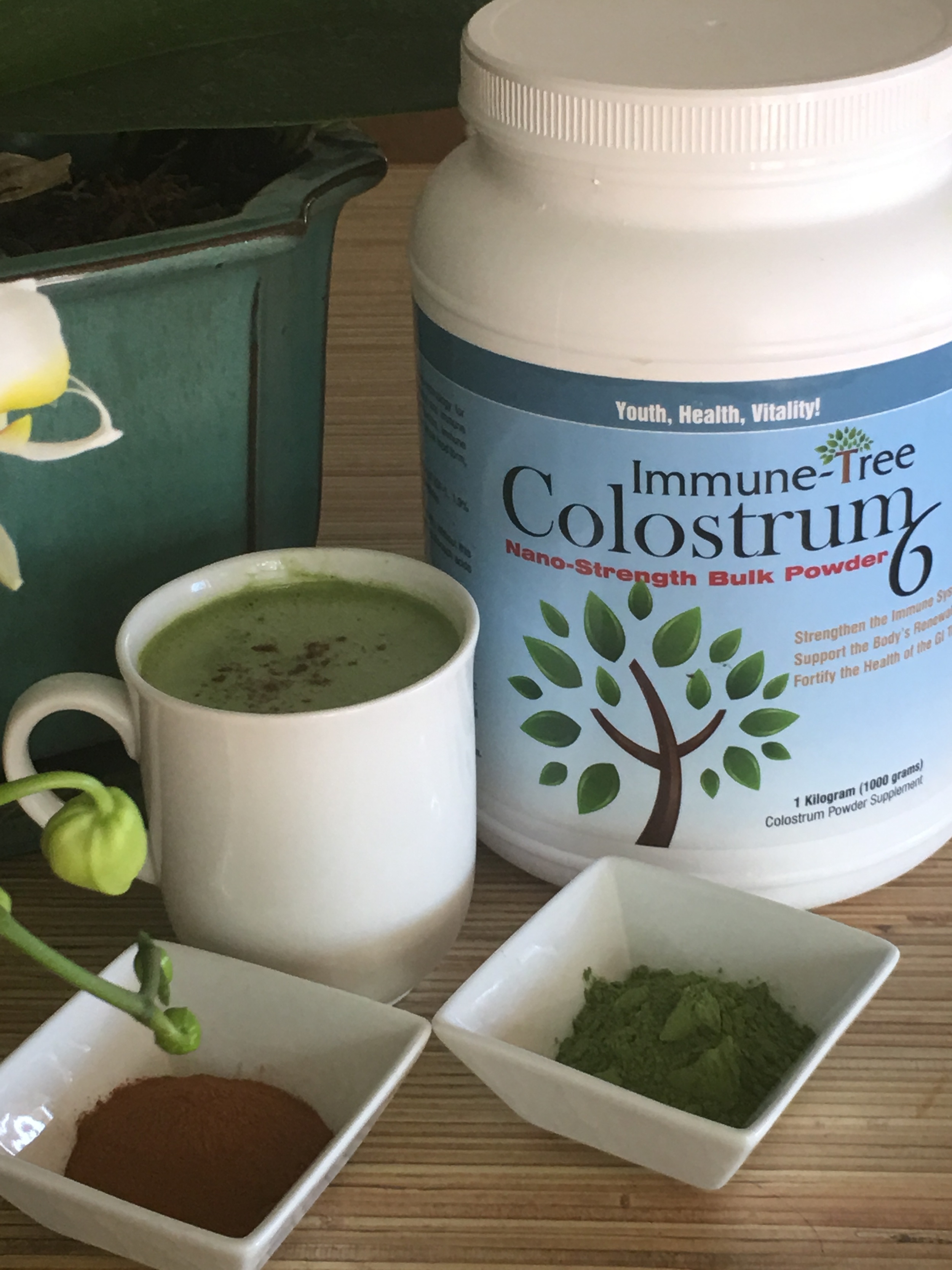 Recently I purchased some Matcha Green Tea powder. But, I could not even finish one cup of it, until I began reducing the amount of green tea powder I was contributing to my drink. I used one tsp for one cup and found it was too much. So, I reduced the amount to 1/3 of a tsp, added some stevia, ImmuneTree Colostrum and cinnamon and had the most delicious drink of all time. This drink is highly nutritional. To find out more about ImmuneTree Colostrum, visit their website HERE. You can also purchase it on Amazon. Enjoy and drop me a line if you would like more info and ideas on how to incorporate this great food into your diet.