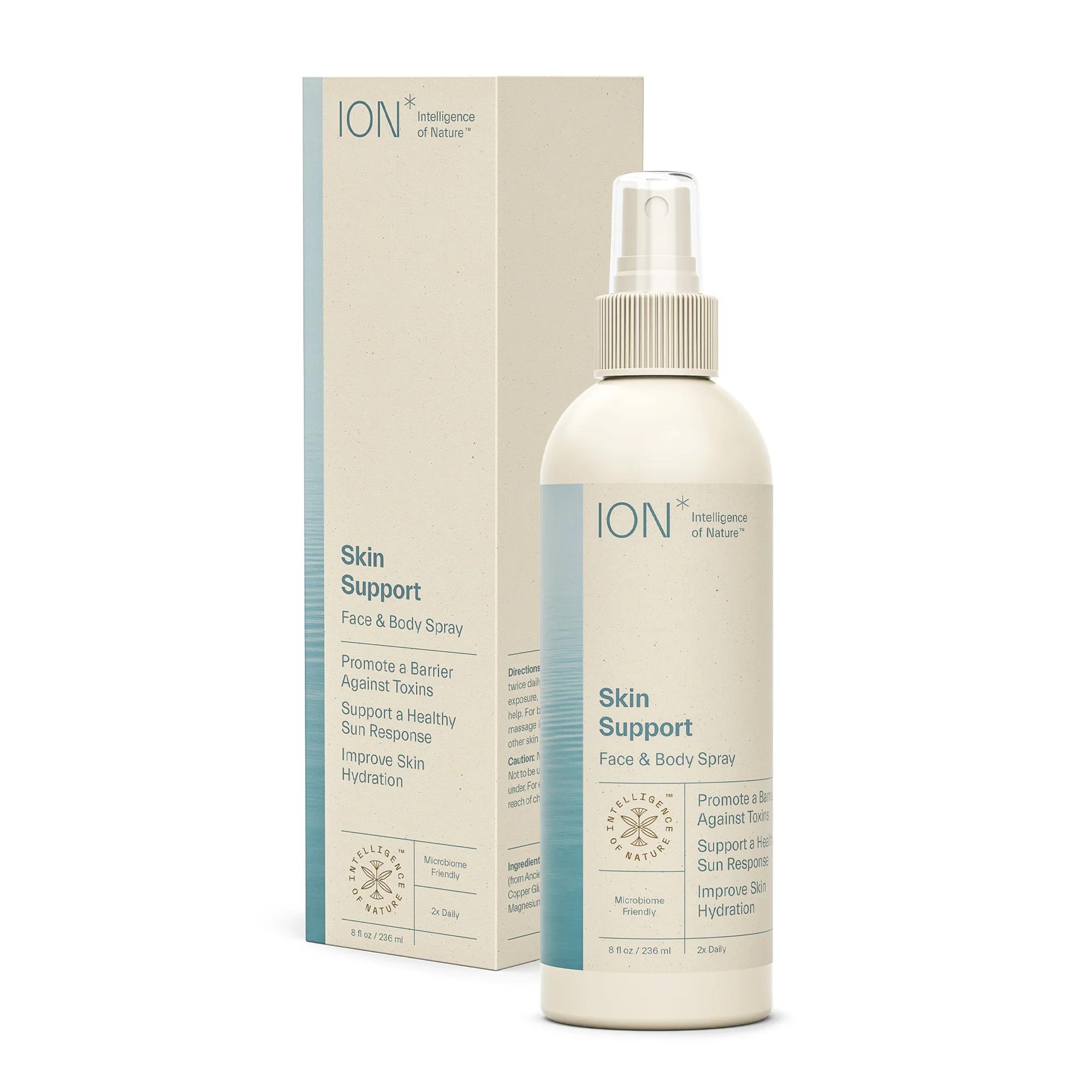 ION* Skin Support works to defend against toxins and facilitate microbial connection, helping to reduce redness and signs of skin damage while also encouraging skin to breathe and glow.